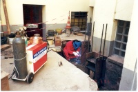 Die Pfähle werden aus Segmenten in Stoßmuffenschweißung zusammengesetzt, welche den Platzverhältnissen